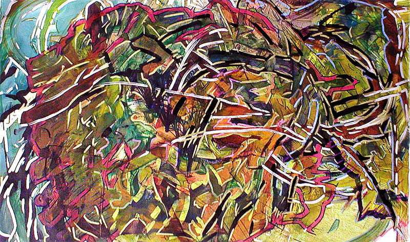 Monochine II - 2006. Color monoprint and marker, 22 x 13.5 inches