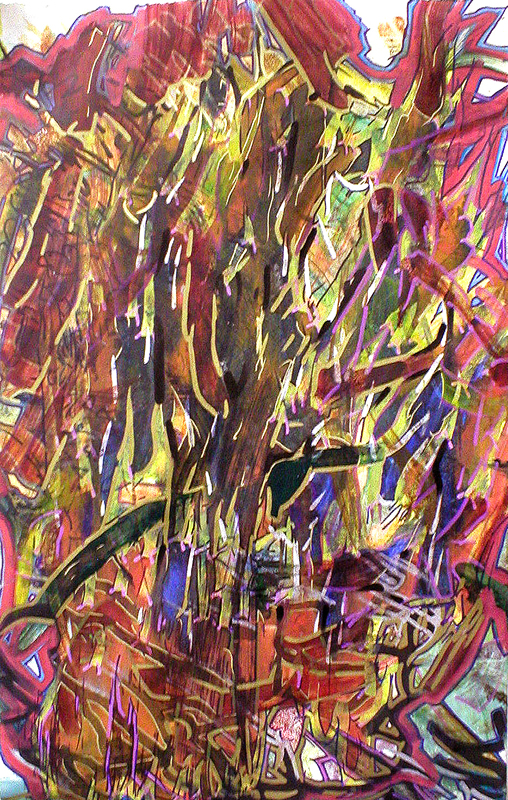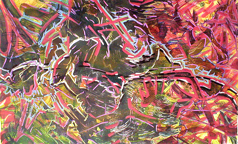 Monoprint - 2006. Color monoprint and marker, 22 x 13.5 inches